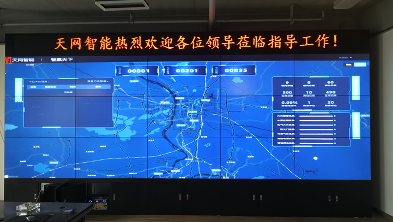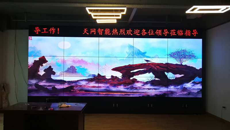 近期,維康國際為湖南省天網智能科技有限公司安裝一套高清顯示大屏,3x5拼接、55寸液晶拼接屏,雙邊拼縫為3.5mm,采用大數據顯示解決方案,主要用來大數據顯示。