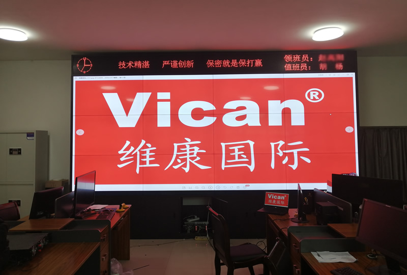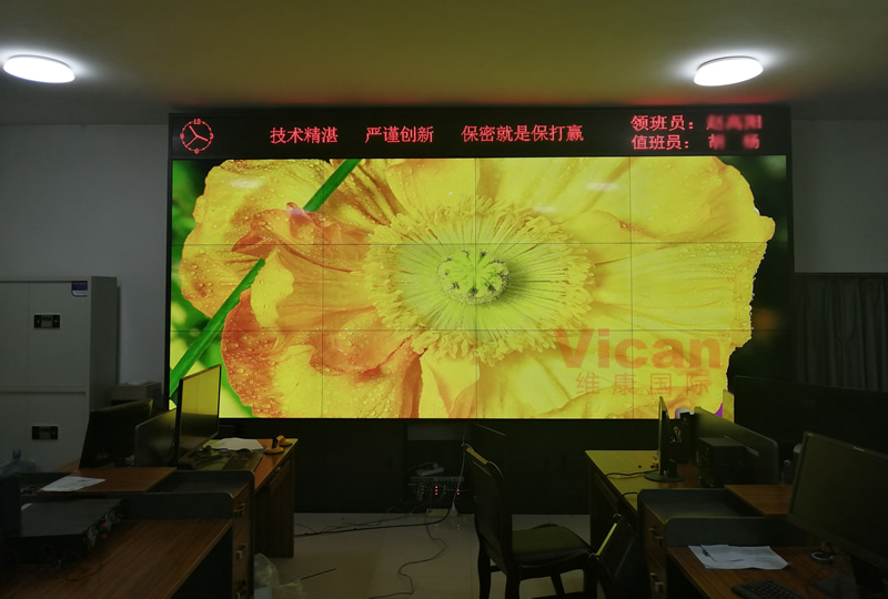 維康國際為河南某部隊提供的這套會議大屏,采用3行4列、55寸液晶拼接屏,產品性能穩定,超窄邊設計,雙邊拼縫僅有0.88mm,如上圖所示,有著很好的畫面一體化顯示效果。