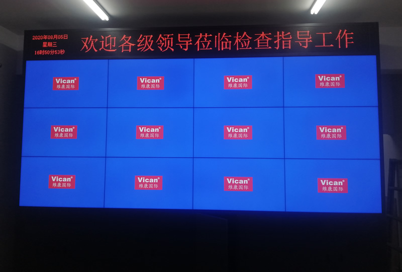 維康國際為陜西省渭南部隊提供的這套指揮中心大屏采用3x4拼接、46寸液晶拼接屏,雙邊拼縫為1.7mm,產品性能穩定,顯示效果好。