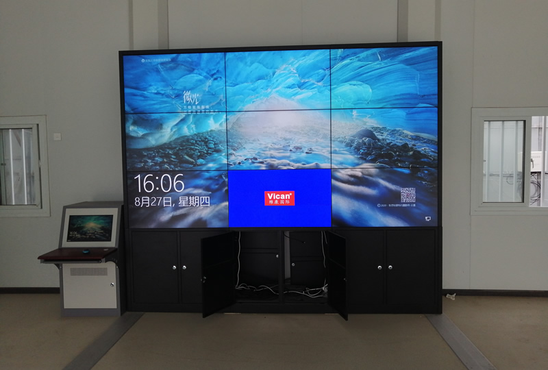該案例中,維康國(guó)際為廣州中建三局項(xiàng)目部提供一套會(huì)議大屏,采用3行3列、55寸液晶拼接屏,機(jī)柜式安裝,畫(huà)面清晰、一體化顯示效果好。