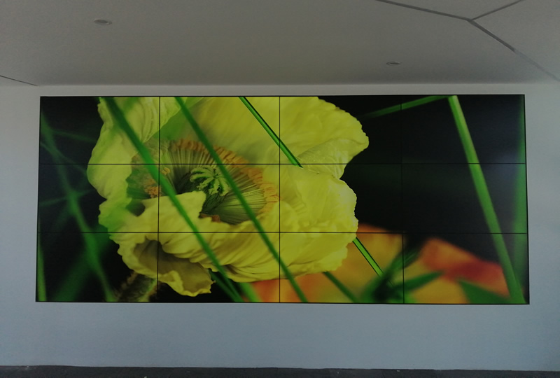 本案例中,維康國際為日照足球公園提供一套商顯拼接屏,由3行4列、55寸液晶拼接屏組成,超窄邊設計,雙邊拼縫僅有3.5mm,如上圖所示,我們從大屏可以看出,畫面顯示清晰亮麗,采用內嵌式安裝,大屏與墻面連成一體,更顯美觀大氣。