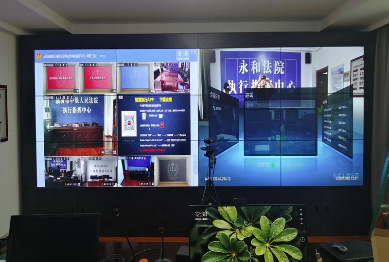 本案例中,維康國際為永和人們法院提高一套視頻會議顯示屏,主要由3行4列、55寸3.5mm液晶拼接屏組成,主要用來視頻會議顯示使用,大屏畫面高清顯示,產(chǎn)品性能穩(wěn)定。
