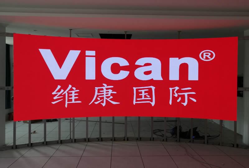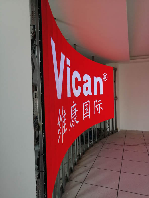 本案例中,維康國際為廣州天河某軟件公司提供一套展廳LED顯示屏,采用弧形安裝方式,COB小間距技術,有著更好的顯示效果,如上圖所示。
