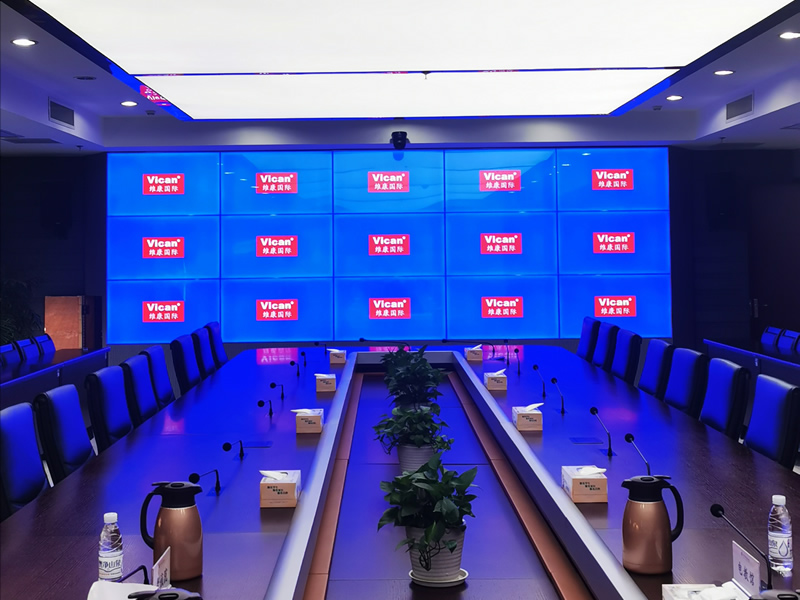 本案例中,維康國際為廣州某政府部門提供一套視頻會議大屏,由3x5拼接、55寸拼接屏組成,主要用于遠程視頻會議、普通會議顯示使用,如上圖所示。