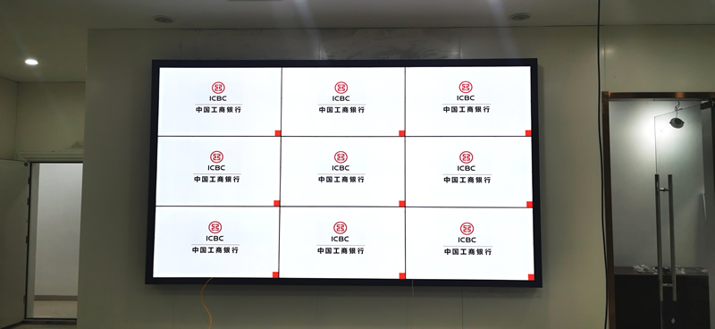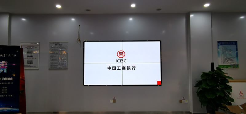 本案例中,維康國際為中國工商銀行某分公司提供多套顯示屏,采用46寸和55寸超窄邊液晶拼接屏,根據不同的區(qū)域顯示需求,選擇3x3、2x3、2x2等多種拼接方式,大屏幕顯示清晰、分辨率高、色彩豐富、性能穩(wěn)定。