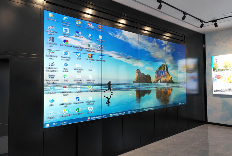 本案例中,維康國際為滕州市中聯水泥公司又提供了一套監控拼接屏,采用3x4拼接、55寸3.5mm液晶拼接屏,由于之前提供過的一套3x9拼接、55寸3.5mm液晶拼接屏不夠用,現在再增加了一套,如上圖所示。