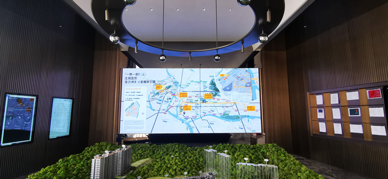 本案例中,維康國際為廣州市金沙洲某售樓中心提供了一套全彩LED顯示屏,如上圖所示,采用P2全彩LED系列,大屏幕畫面顯示清晰,分辨率高,有著很好的視覺體驗效果。