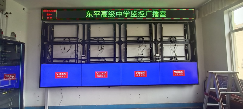本案例中,維康國際為東平市高級中學的監控廣播室提供一套顯示大屏,采用3行4列、55寸液晶拼接屏,主要用來 顯示監控畫面,如上圖所示。
