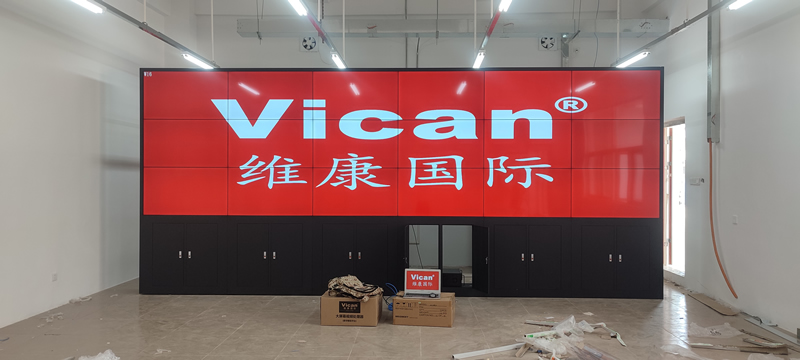 本案例中,維康國際為云浮市郁南西江中學(xué)提供一套會議室顯示大屏,采用3*6拼接、49寸3.5mm液晶拼接屏,機柜式安裝,如上圖所示。