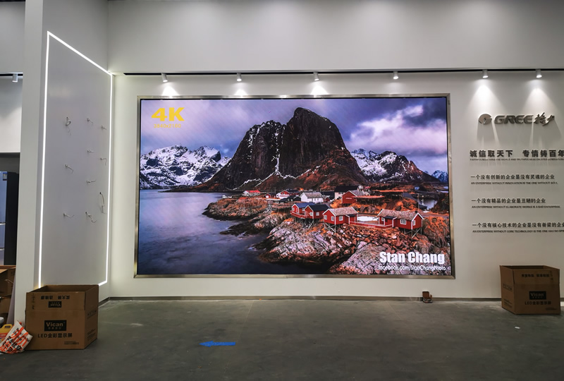 本案例中,維康國際為寧鄉市格力工廠提供一套大屏,采用P1.8間距的LED顯示屏,大屏幕顯示清晰、色彩豐富、一體化顯示效果好。