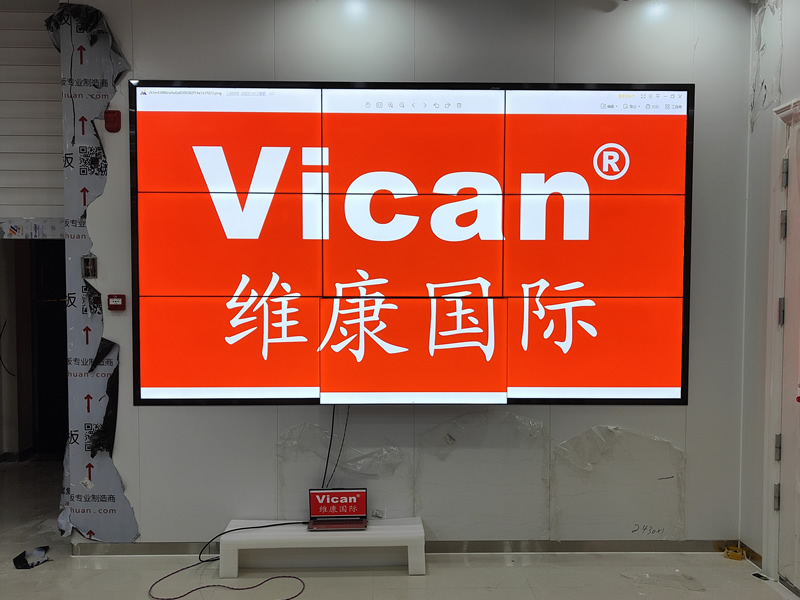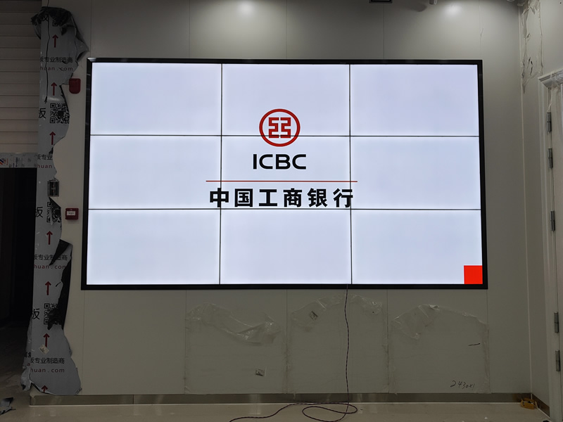 本案例中,維康國際為安裝池州工行某營業廳提供一套展示顯示大屏,采用3行3列,55寸3.5mm拼縫的液晶拼接屏,大屏幕顯示清晰、視覺顯示效果好,如上圖所示。