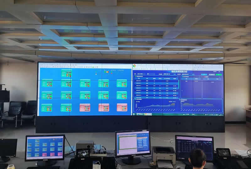 本案例中,維康國際為保定市某電力局提供一套指揮中心大屏,采用3行6列、55寸液晶拼接屏,雙邊拼縫為3.5mm,大屏幕顯示清晰,色彩柔和,支持24小時長時間不間斷的運行工作。