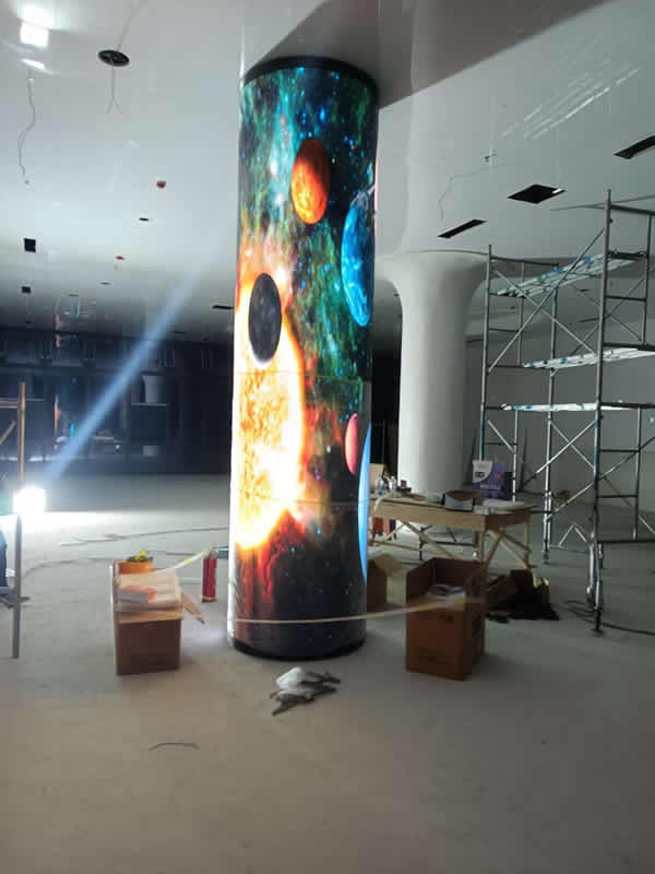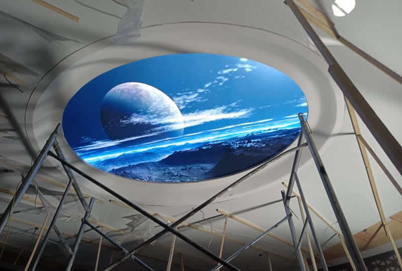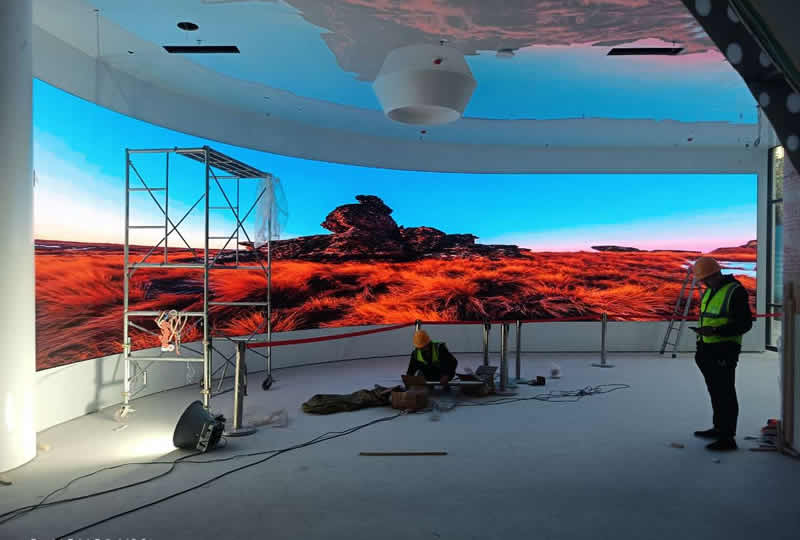 本案例中,維康國際為濟南市某企業展廳提供多套LED顯示屏,如上圖所示,有LED天幕屏、LED圓柱屏、LED平面屏、LED弧形屏,多樣化顯示效果,畫面清晰,視覺震撼。
