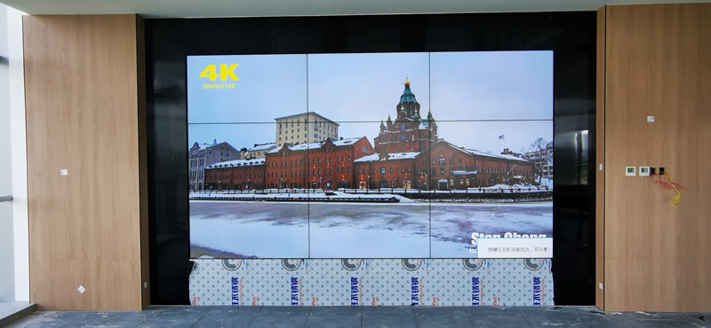 本案例中,維康國際為上海浦東某公司會議室提供一套高清顯示大屏,采用3x3拼接、55寸液晶拼接屏,拼縫為1.7mm,大屏幕顯示清晰,色彩豐富,一體化效果很好。
