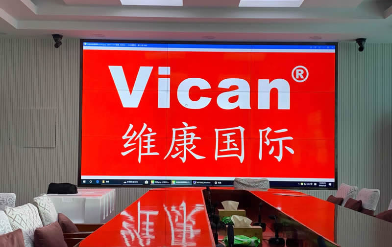 本次案例,是由維康國(guó)際為廣西梧州某政府部門會(huì)議室提供的一套拼接大屏,采用3x3拼接、55寸液晶拼接屏,拼縫僅有0.8mm,有著出色的畫面顯示效果,采用包邊式安裝,讓整體會(huì)議室顯得更高檔、大氣。