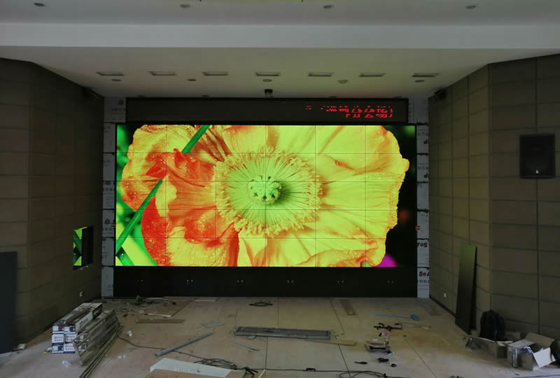 這套5x6會議大屏安裝在淄博某水利局,采用55寸液晶拼接屏,雙邊拼縫為3.5mm,主要用來做信息數據顯示。大屏畫面總長度約:7.28米,高度約:3.42米。