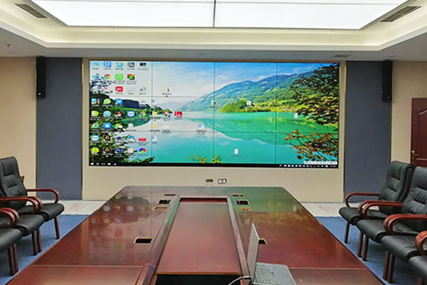 拼接屏在辦公室場合的應用也很廣泛,其單屏尺寸分別為46英寸、49英寸、55英寸、65英寸等,可根據自己的顯示要求拼接成不同尺寸和比例的大屏幕。例如,規模較小的辦公室場合可以使用2X2、2X3拼接,再大一點的規模可采用3x3、3x4拼接方式,更多的辦公室場合可選擇4x4、4x5、4x6等拼接方式。