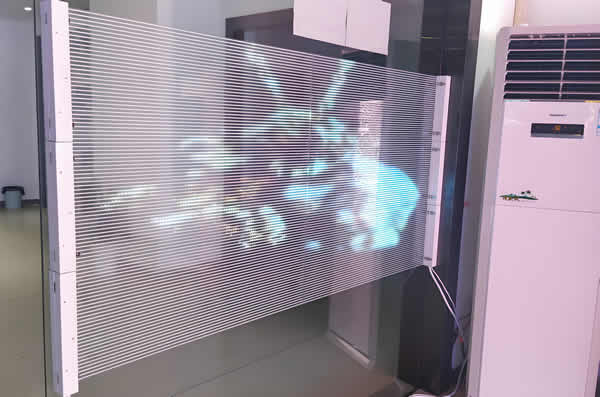 這是一款普通的透明屏,用的也比較多,它的優點是價格便宜,不過它的顯示效果一般,在戶外與室內場合都可以使用,可以裝在商場櫥窗玻璃的后面,也可以安裝在戶外幕墻上,通過拼接成一個超大屏幕顯示。