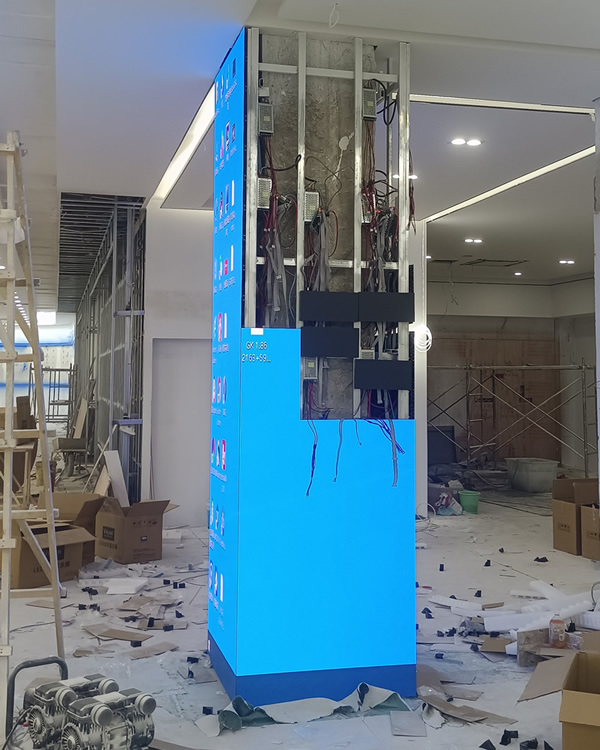根據設計規劃,首先搭建圓柱型LED顯示屏的安裝支架結構。支架需穩固可靠,能夠完全承受顯示屏的重量。