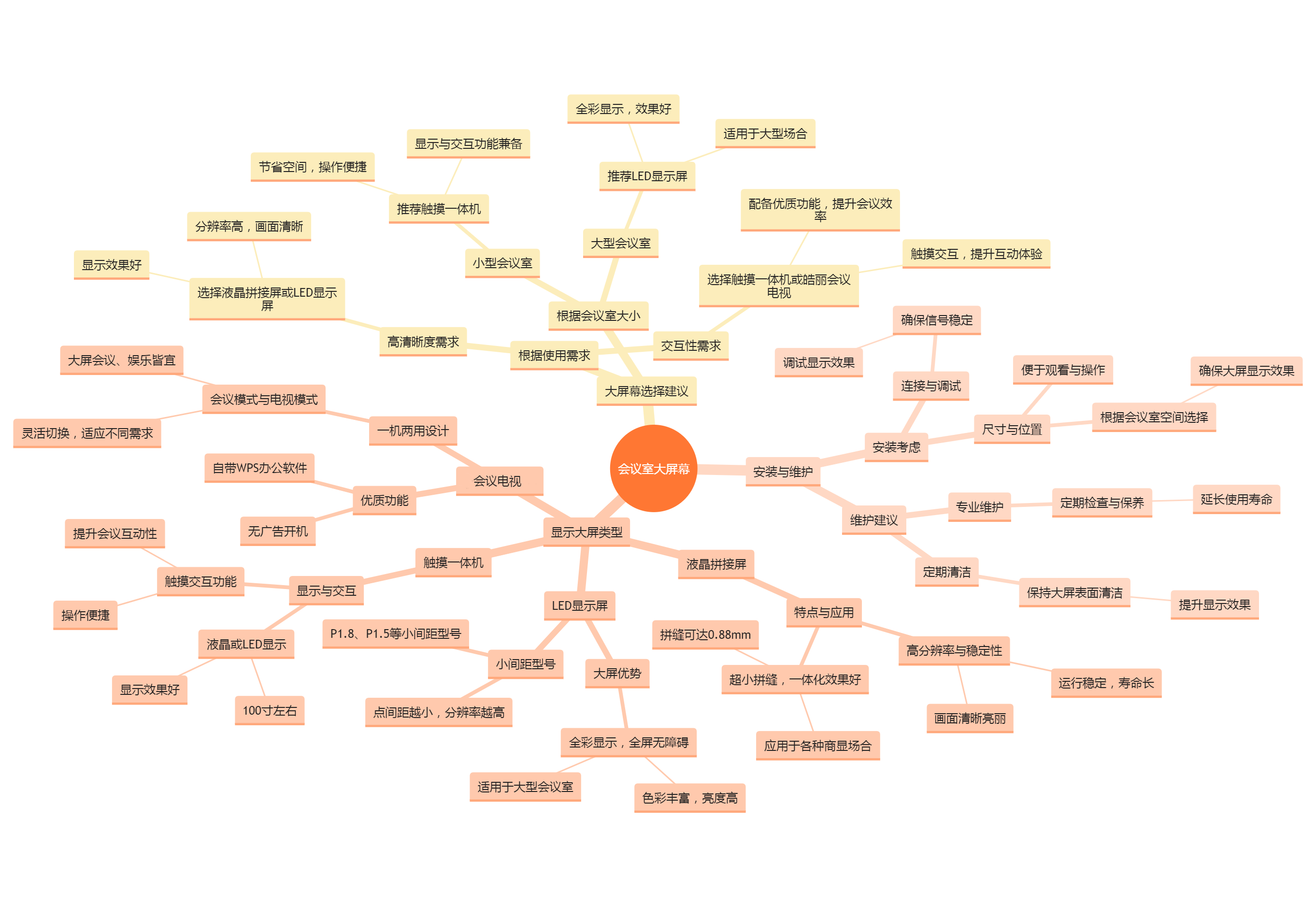 - 思考方向:在選擇會議室大屏幕時,還需考慮安裝環境、維護保養成本以及未來升級擴展等因素。