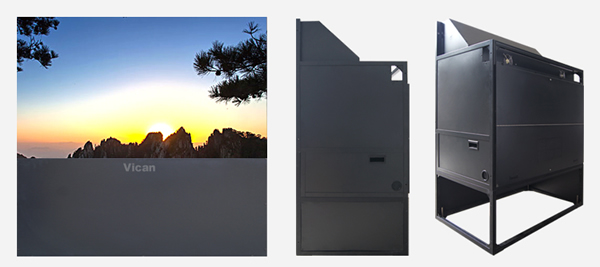 4:3的60寸DLP大屏幕單屏尺寸為1220*915mm,16:9的屏幕尺寸為1328*747mm,采用超對比復合玻璃幕,外觀采用全金屬外殼加鋁全金設計,在保證強度的同時同時大幅度降低了單元重量。防塵的氣密式結構箱體完全隔離設備空間和光路空間,確保長時間使用機芯內部無灰塵,符合IP6X的防塵標準。