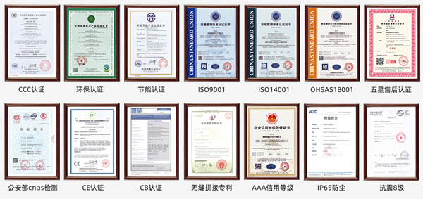 維康公司及液晶拼接屏產(chǎn)品均通過了ISO9001、ISO14001、OHSAS18001、強制3C、節(jié)能、公安部檢測報告、CE、CB、FCC、ROHS等國內(nèi)外三十余項權(quán)威認(rèn)證,在招投標(biāo)項目中有絕對的優(yōu)勢。