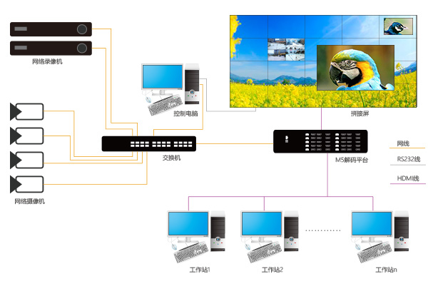 支持模擬鍵盤、網絡鍵盤控制;支持跨平臺圖形化界面瀏覽器(支持IE/CHROM/360瀏覽器/QQ瀏覽器/Firefox等瀏覽器)控制;支持客戶端控制、支持我公司平臺軟件控制;提供SDK,支持第三方軟件接入控制;3.接口:自帶外部HDMI高清信號源輸入;2個USB2.0接口; 1個RS485接口;1路的音頻輸入輸出。