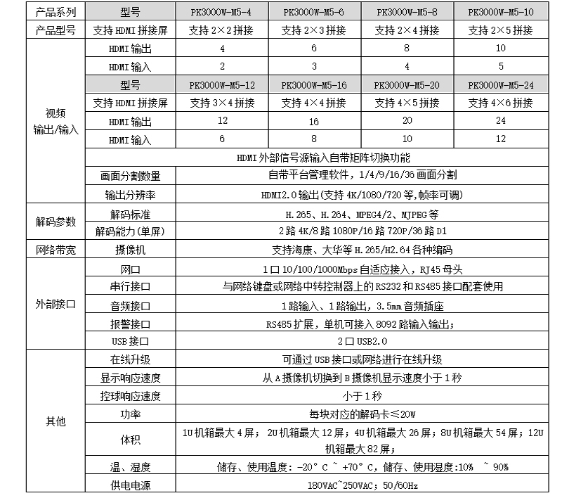 PK3000W-M5數字矩陣采用最新的安防專用編解碼芯片,專為H.265標準及4K超高清編解碼而設計,產品采用嵌入式LINUX架構,保障系統的穩定運行,采用模塊化設計,可以在大型、超大型數字安防監控系統中實現解碼、編碼、拼接、分割、畫中畫、漫游等功能,為工程項目最大程序解決大數據數字化監控系統提供解碼上墻及多信號輸入編碼等提供一站式解決方案;設備采用全鋁標準機箱,結構上大氣美觀可靠,散熱性結構化好。