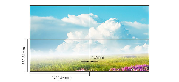 1、京東方原裝面板,超窄邊設計,雙邊拼接只有1.7mm,有著很好是大屏畫面一體化顯示效果。