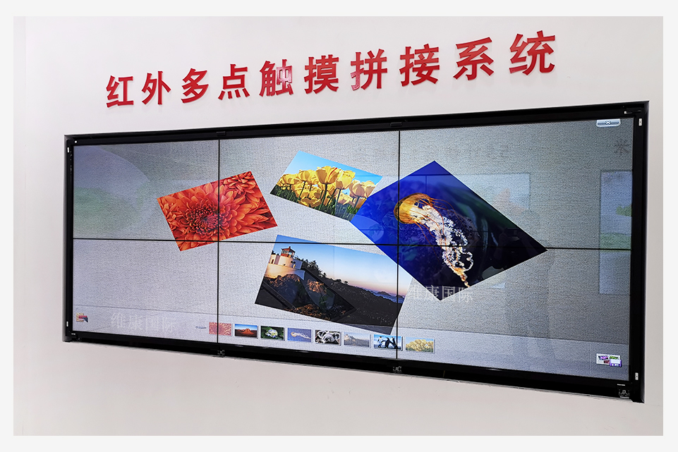 下圖是我公司安裝在深圳展廳的一組2*3的觸摸拼接屏實拍圖,采用紅外多點觸摸技術,支持多人同時觸摸屏幕。