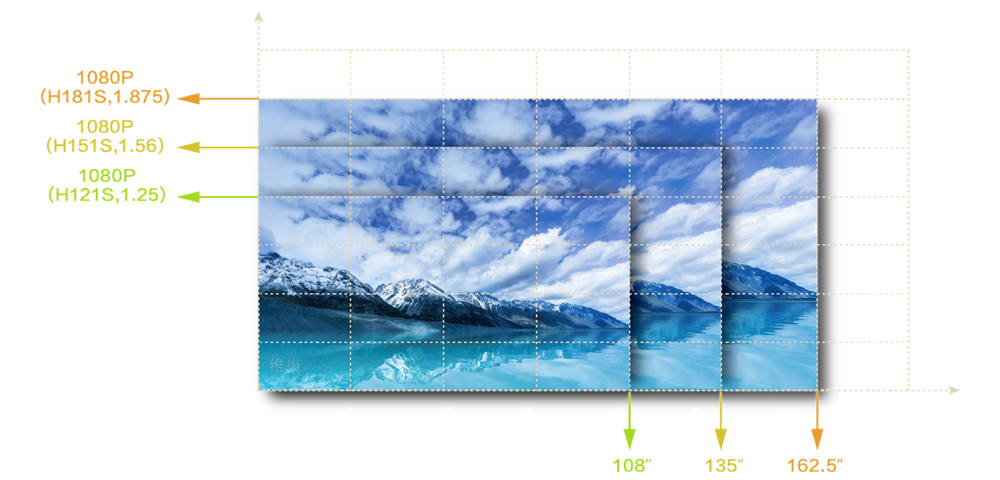 采用16:9的比例設(shè)計(jì)能輕松拼接實(shí)現(xiàn)FHD/2K/4K分辨率,輸入分辨率與顯示分辨率點(diǎn)對點(diǎn),使顯示畫面能夠完美的匹配呈現(xiàn)16:9片源 。播放視頻時(shí)無扭曲,變形,模糊現(xiàn)象。